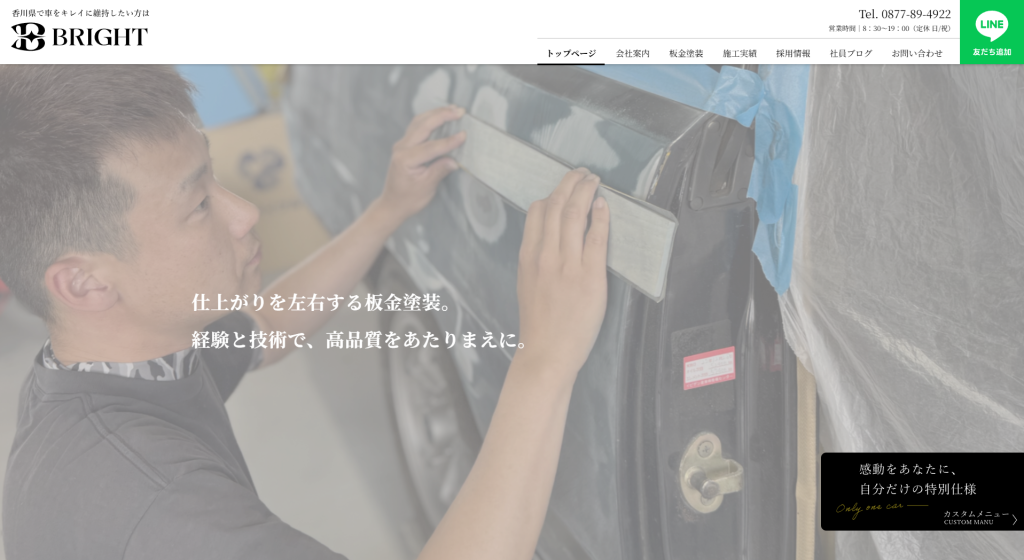 新たなホームページでは、キズやヘコミの修理から事故対応、オリジナルカスタムや車両販売まで、幅広い情報を掲載いたしました。